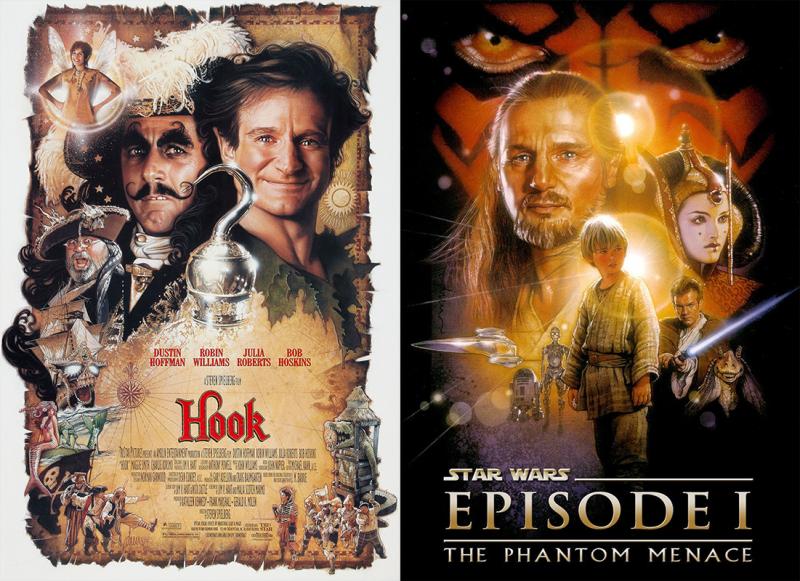Постеры к фильмам «Капитан Крюк» (1991) и «Звёздные войны: Эпизод 1 – Скрытая угроза» (1999)
