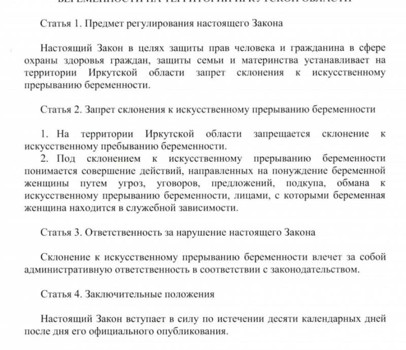 "Под склонением <…> понимается совершение действий, направленных на понуждение беременной женщины путем угроз, уговоров, предложений, подкупа, обмана к искусственному прерыванию беременности, лицами, с которыми беременная женщина находится в служебной зависимости", — указано в законопроекте.