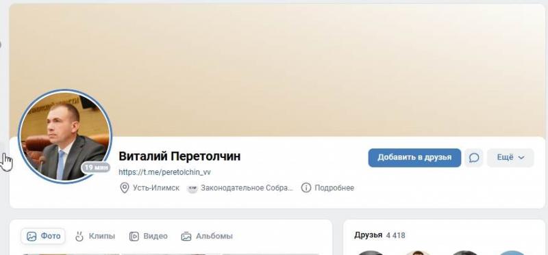 Кстати, Перетолчин зачем-то завел себе другую страницу во «Вконтакте», забросив в 2024-м старую.