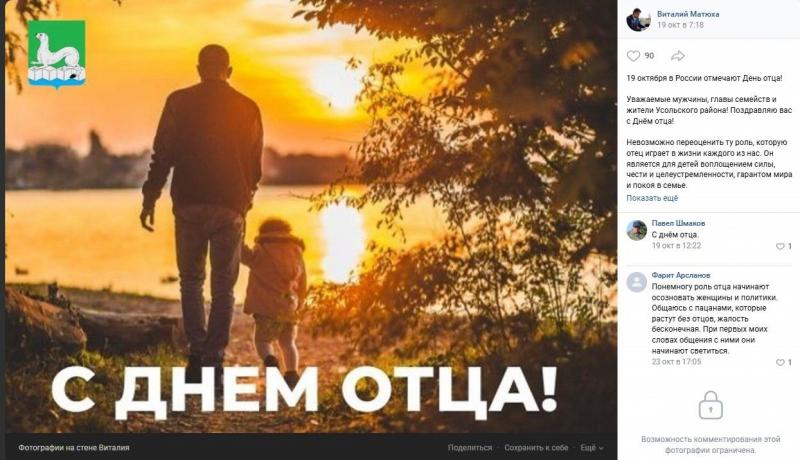 Сам же Виталий Иванович ни жестом не показывает, что собирается уйти. Несмотря на коммунистическое происхождение своего кресла, движется строго в фарватере «Единой России». Поздравляет территорию со всеми праздниками кряду, в том числе вот с новомодным Днем отца.