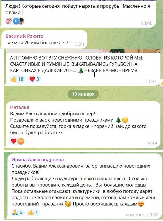 Тем не менее, заглянув в телеграм-каналы обоих градоначальников, массовые сигналы SOS от граждан прочитаешь только в адрес иркутского градоначальника. Хотя неоднократные визиты в ресурс Вадима Александровича убеждают, что комментарии там не уничтожаются. Но черемховцы упорно предпочитают поздравлять мэра и друг друга с праздниками да выяснять безболезненные вопросы.