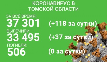 COVID-19 в Томской области: заболели 118 человек, выздоровели 37