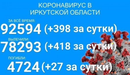 Ещё 398 пациентов заболело COVID-19 в Прибайкалье
