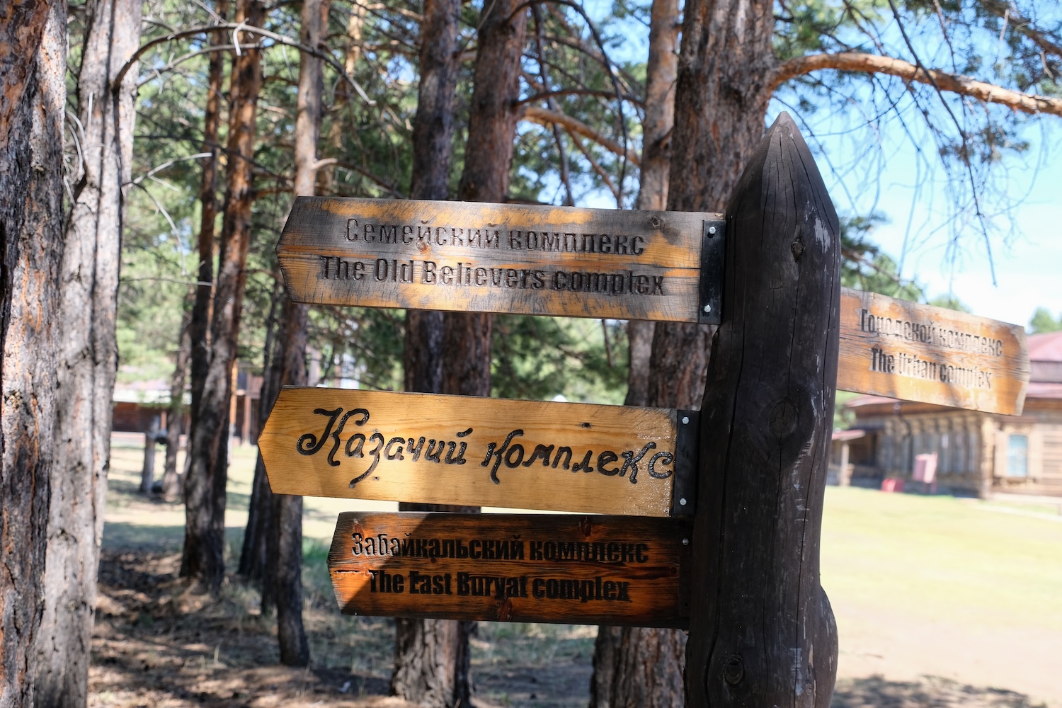 Среди экспозиционных комплексов можно встретить дома крестьян-пашенников, атаманов-казаков и старообрядческий семейский комплекс. Здесь также выставлен эвенкийский комплекс: чумы, лабазы, утварь коренных северных народов. Бурятский комплекс включает прибайкальский и забайкальский секторы: деревянные и войлочные юрты, культовое буддийское зодчество.