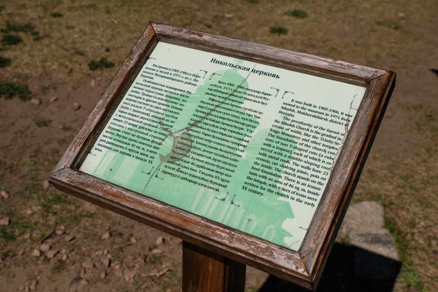 В центре Этнографического музея стоит старообрядческая Никольская церковь – подлинный старообрядческий храм начала XX века, построенный в селе Никольском на средства местных прихожан‑семейских (ее вы могли видеть в начале фоторепортажа). В 1930‑е годы ее закрыли и использовали как склад, а в 1971 году разобрали и перевезли в музей. Реставрация завершилась только к 1977 году, а иконостас открыли для посетителей в 1998 году.