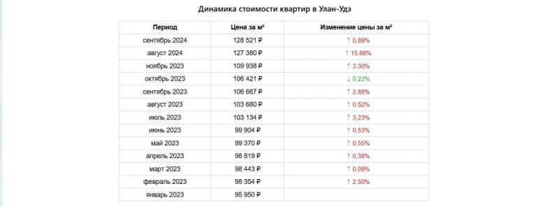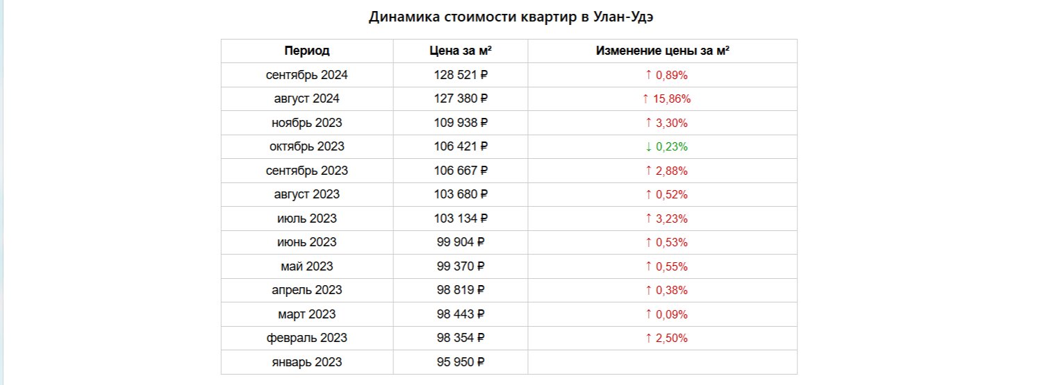 Массовый и платежёспособный спрос, искусственно созданный государством, столкнулся с ограниченным количеством новостроек в Улан-Удэ. Программа не распространялась на вторичку. Застройщики — не дураки, они начали поднимать цены. За ними естественно потянулся и вторичный рынок. Если в конце 2022 года «квадрат» на вторичном рынке стоил около 96 тысяч рублей, то к осени 2024-го — уже более 128 тысяч. Рост почти на треть за полтора года.