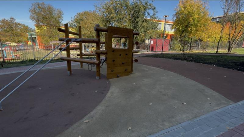Подрядчик уложил брусчатку и покрытие из резиновой крошки для безопасности детей, выполнил озеленение, установил освещение и видеонаблюдение, проложил поливочный водопровод для заботы о растениях, разместил малые архитектурные формы – стелы с тематикой ВОВ.