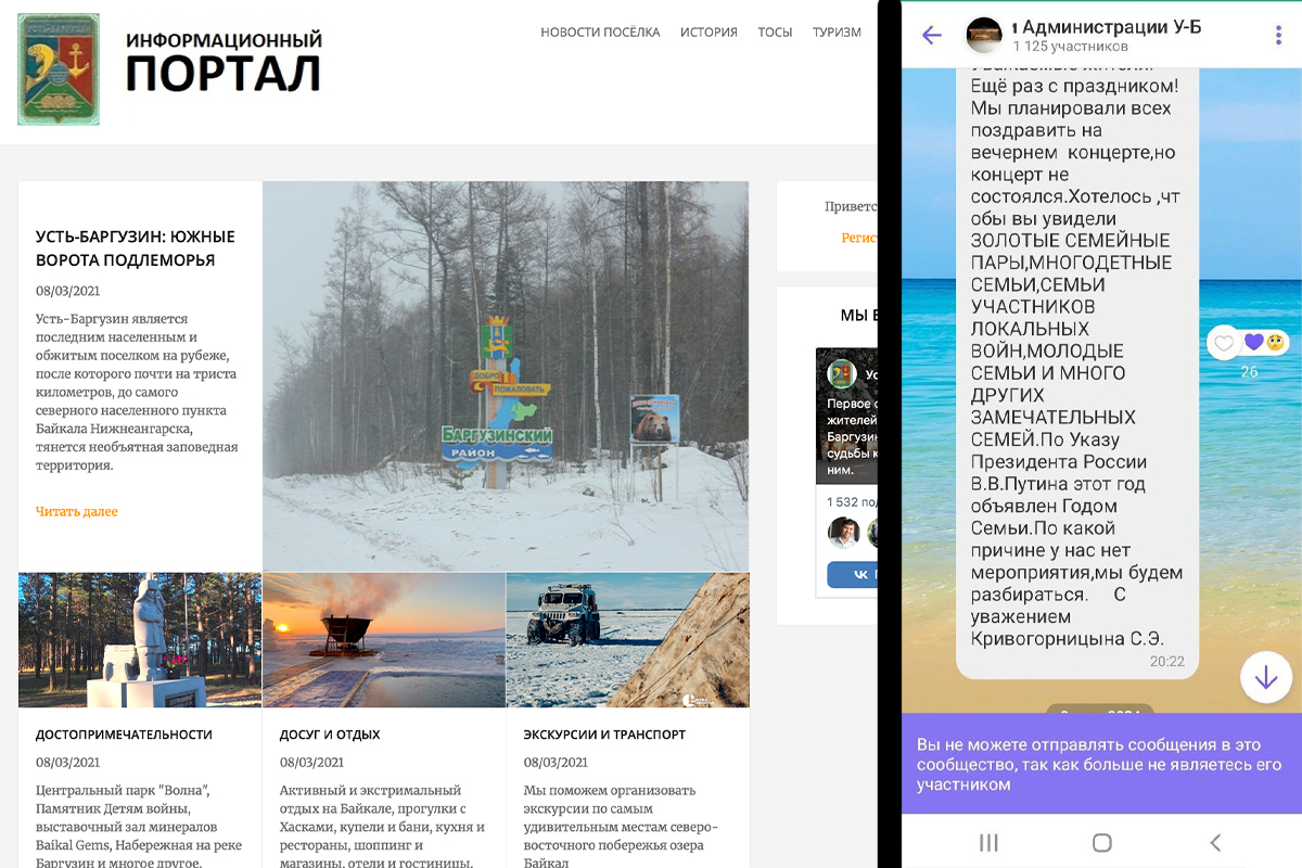 Жители Усть-Баргузина не требуют от чиновников нерешаемых задач: они хотят стадион, который был у них по праву, хотят парк, который был обещан и не построен. Они хотят, в конце концов, открытого диалога с властью. Но вместо этого им перекрывают кислород, параллельно пытаясь под шумок перерисовывать карты.