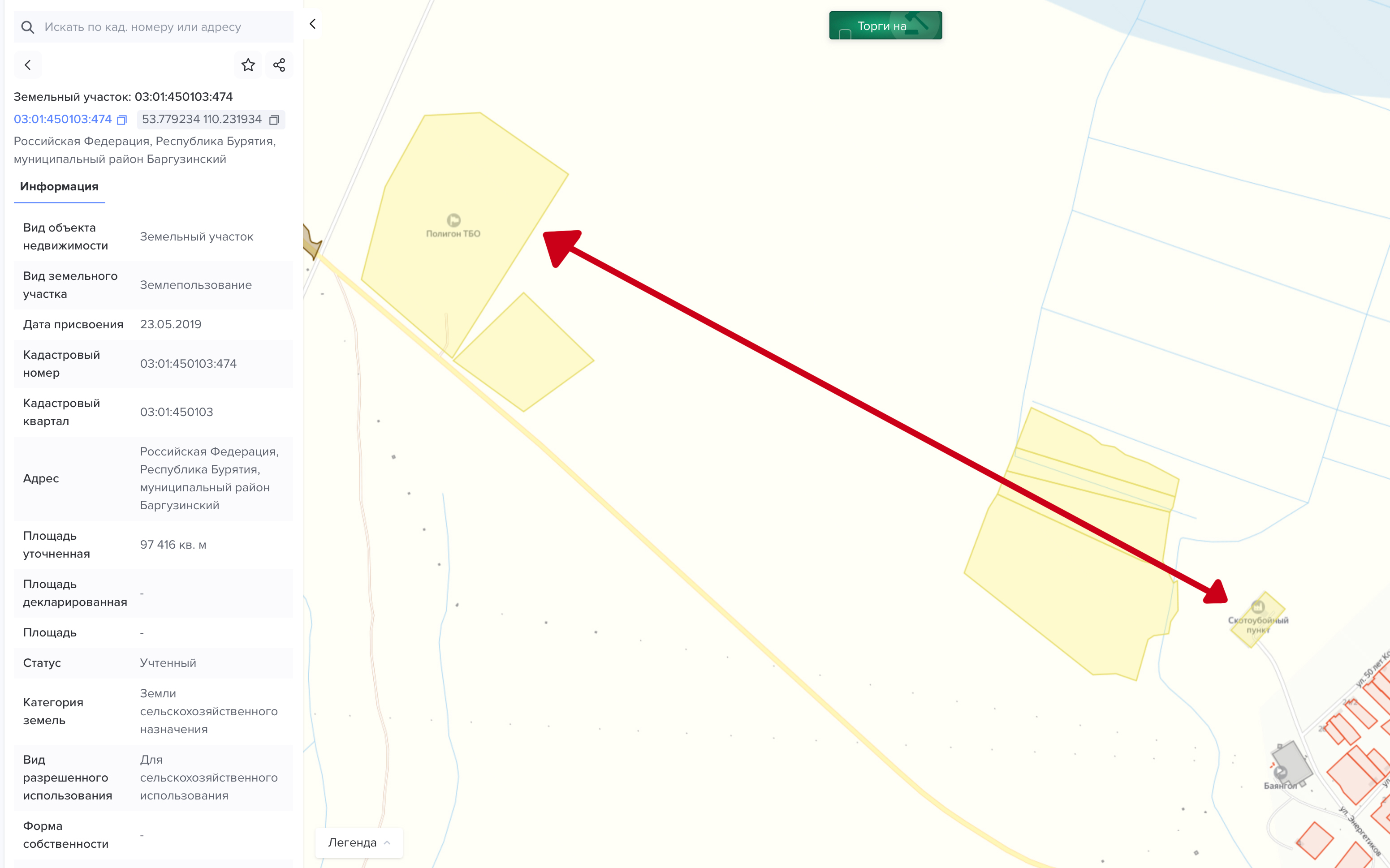 Свалка вблизи села Баянгол оказалась самой интересной. Здесь она официально значится как полигон твёрдых бытовых отходов с кадастровым номером 03:01:450103:474. Однако никаких комплексных мер по техническому оборудованию этого объекта и санитарному контролю, подтверждённых в публичных источниках, не осуществляется. Более того, на самой карте участок отмечен лишь как точка накопления мусора, без статуса современного, лицензированного объекта экологической инфраструктуры.