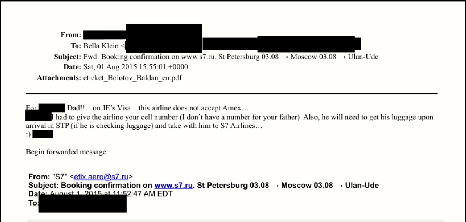JE — это Джеффри Эпштейн. Его личная карта Visa использовалась для оплаты рейса S7 115 из Москвы в Улан-Удэ. Ассистенты миллионера столкнулись с тем, что российская система бронирования S7 Airlines заблокировала транзакцию. Служба безопасности авиакомпании посчитала подозрительной оплату билета в Бурятию картой американского финансиста и потребовала скан паспорта владельца карты.