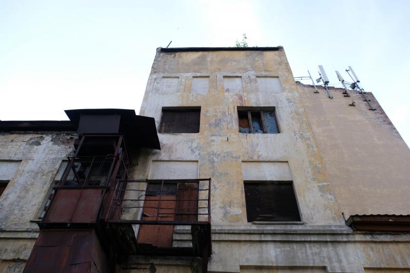 Клубную часть частично восстановили: заменили кровлю и отопление. А вот театральный корпус обветшал окончательно: окна заколочены, крыша течёт и здание признано аварийным.