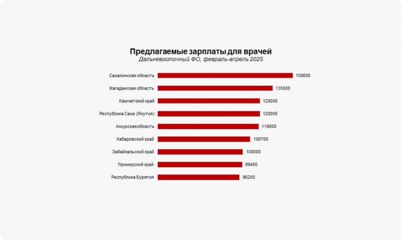 Наглядный ответ на вопрос, почему врачи уезжают из Бурятии. Разница с лидером рейтинга по ДФО Сахалином — 62 тысячи рублей в месяц