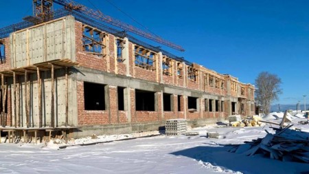 В селе Оймур Кабанского района Бурятии продолжают строить новую школу. Сейчас объект готов на 45%. Подрядчик уже закончил конструктив здания и сейчас занят монтажом диафрагм в блоке Д, возведением перегородок в подвале блоков А и Б и обустройством крылец.