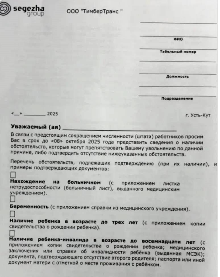 После того, как Бабр опубликовал данные о сокращении не менее тысячи сотрудников предприятия «Сегежа групп» в Усть-Куте (известного как «ТимберТранс» и ТСЛК), компания выкатила релиз.