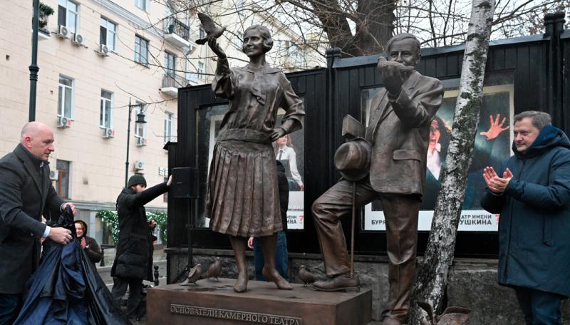 Открытие композиции, созданной скульптором Филиппом Трушиным, приурочили к 75‑летию Театра Пушкина, 110‑летию Камерного театра и 140‑летию со дня рождения Таирова.