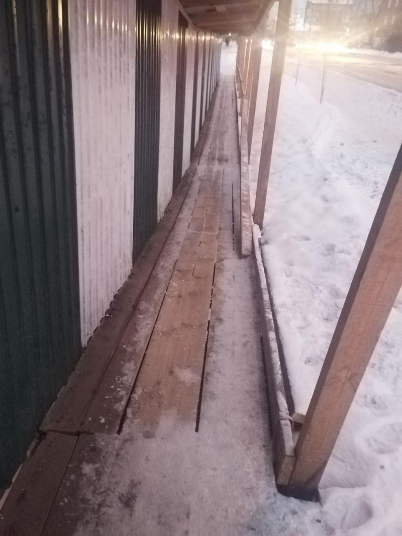 «Администрация, подскажите, пожалуйста, кто будет отвечать, если кто-то сломает тут часть тела? Улица Карла Либкнехта. Пешеходный ведет к улице Горной. Скользко, идти по нему невозможно. Примите меры».