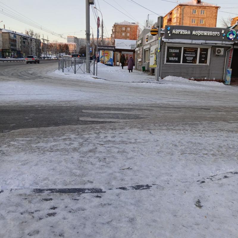 «Сегодня прошлась по улице – и вот на улице Ленина с тротуаров снег убрали, а лед нет! Как так можно? Пожалуйста, уберите наледи. Я про Ленина на участке от перекрестка с Карла Маркса до перекрестка со Свердлова».