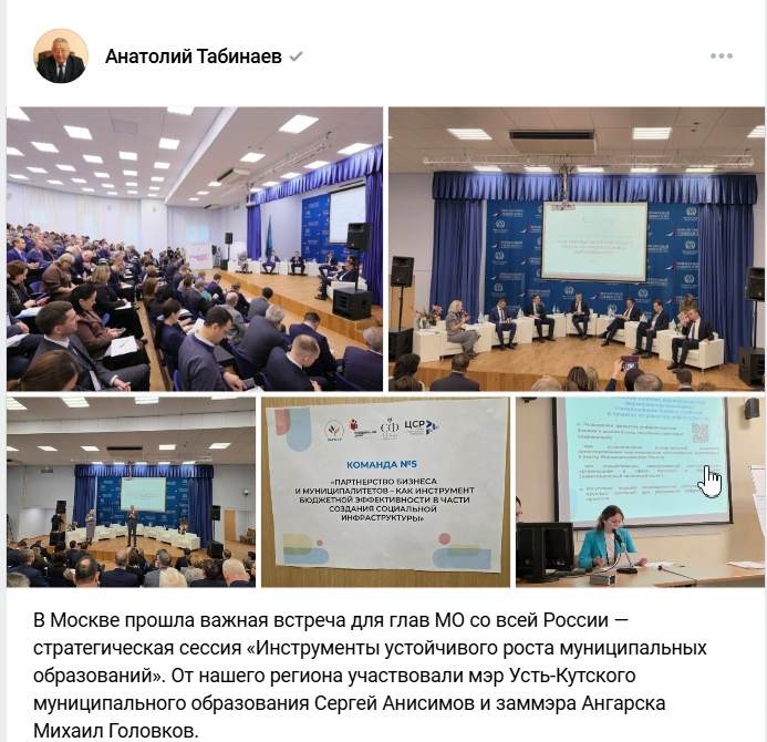 Ангарск, наоборот, отправил в Москву свою знаменитость, о чем почему-то решил рассказать мэр Баяндаевского района Анатолий Табинаев. А именно, в Москву отправили заместителя мэра Ангарска Михаила Головкова. И правильно! Вот уж кто опытный в делах развития! Обязательно должен быть в муниципальной команде человек, имеющий опыт пребывания в СИЗО и прохождения процессуальных действий. Без этого команду вообще нельзя подпускать к должностным действиям, за превышение которых когда-то и принимали Михаила Эдуардовича.