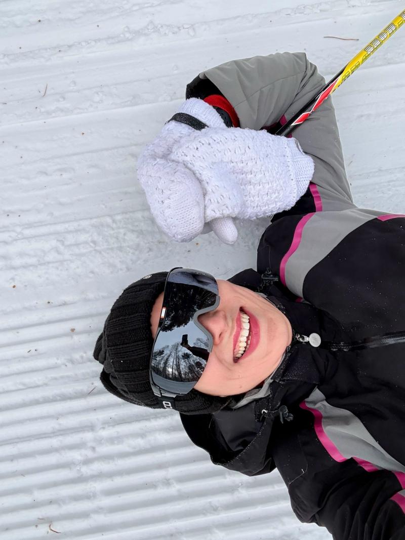 А вот Елена Крыжановская как девушка спортивная явно и сама кого хочешь защитит. Зимой она явно не снижает темпа.