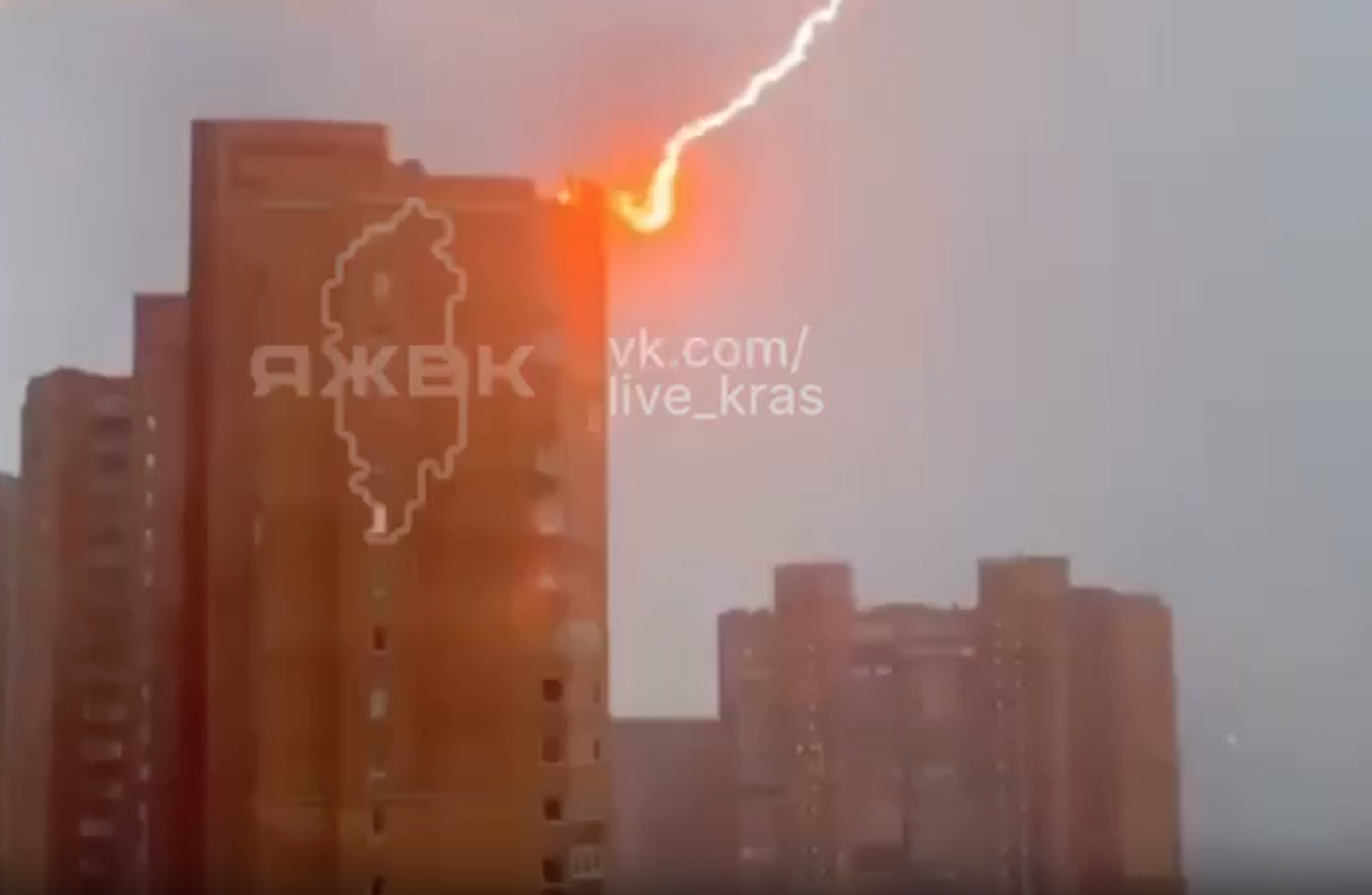 Кроме того, в Красноярске молния ударила в дом на улице Академика Киренского, 32к. После разряда часть конструкции обрушилась на землю.