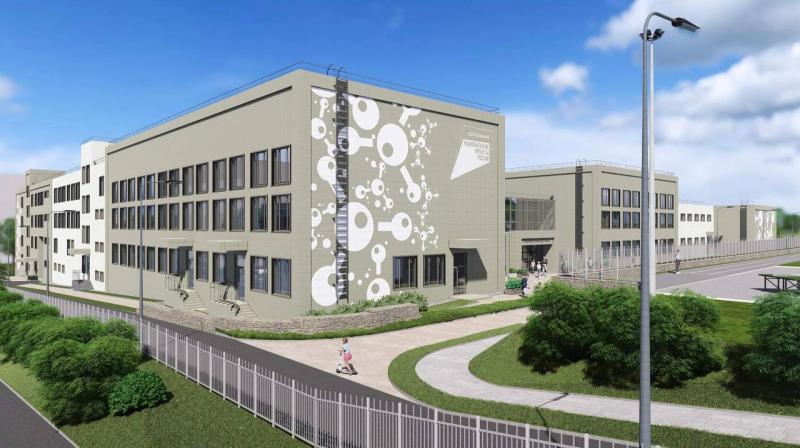 В здании разместят актовый зал, библиотеку, четыре спортивных зала, студию, мастерские для уроков труда и кабинет стоматолога. На прилегающей территории оборудуют спортивные площадки, зону отдыха, игровую площадку и автогородок.