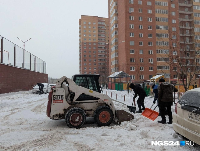 Красноярцы за свои деньги наняли технику и семь часов чистили двор от снега. А что УК?