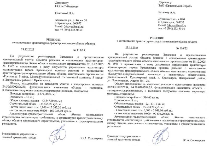 В начале 2025 года стало известно, что связанная с Баталовым фирма «СибИнвест» продолжит застройку Стрелки: рядом с БЦ на берегу Енисея появится большая пятизвёздочная гостиница со SPA, тренажёрным залом и ресторанами. Оцените связи предпринимателя: на постройку отеля ему выделят льготный кредит из бюджета РФ.