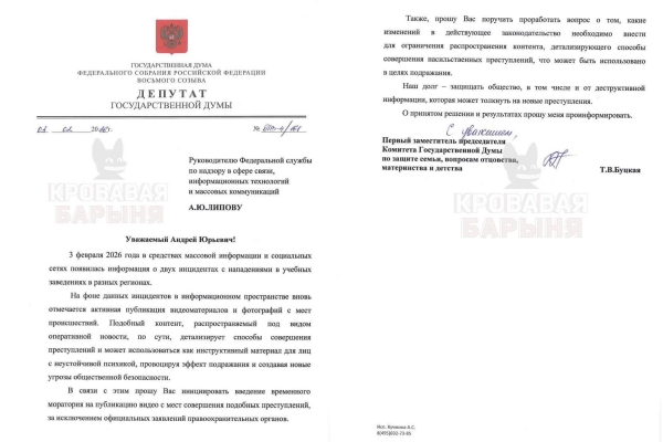 Буцкая предложила запретить журналистам публиковать видео с мест нападений, а также ограничить распространение контента, «детализирующего способы совершения насильственных преступлений». Когда эту новость придали огласке, Буцкая сказала, что о запрете публикаций речи не идёт: