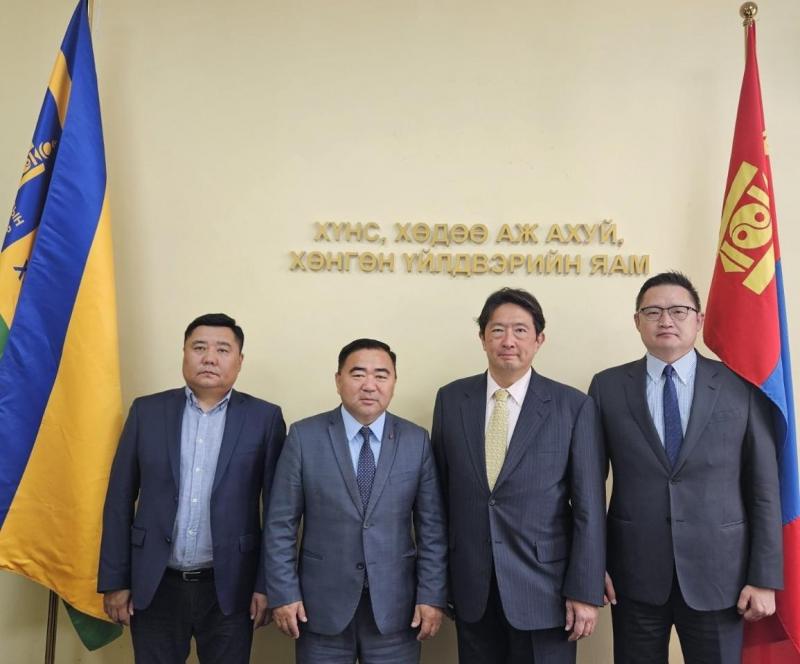 26 августа глава отдела политики и планирования Министерства продовольствия, сельского хозяйства и легкой промышленности Монголии Ц. Болорчулуун и руководитель отдела отраслевой инспекции Б. Батшагай провели рабочую встречу с послом Монголии в Японии Б. Баярсайханом и консультантом Токийского университета сельского хозяйства и технологий, доктором наук Ш. Кавасимой. Об этом сообщает пресс-служба Министерства.