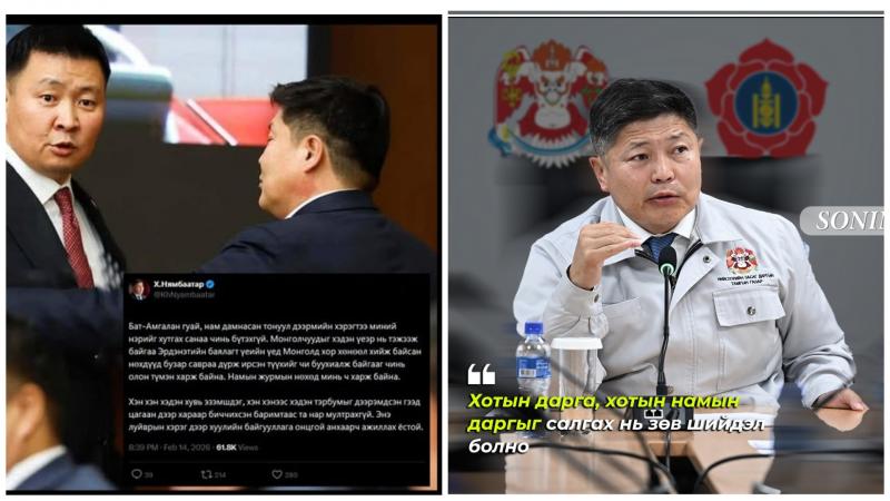 Конкуренция за партийный пост заставила чиновников перейти и к публичным обвинениям. 27 февраля в кулуарах второго заседания Малого хурала Монгольской народной партии министр Э. Бат-Амгалан заявил прессе о политическом заказе против себя. По версии министра, политические конкуренты используют журналистов и распространяют слухи о его причастности к так называемой «угольной мафии». Этот термин обозначает сеть чиновников, которые годами похищали доходы от экспорта монгольского угля. Мэр Х. Нямбаатар ранее принимал активное участие в разгроме этой сети как министр юстиции.