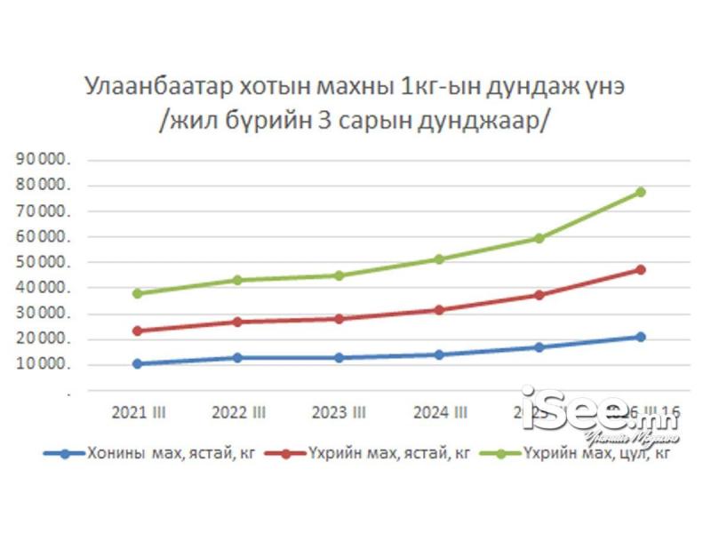 Официальная статистика говорит, что средняя цена говядины без костей превысила 30 тысяч тугриков за килограмм. За год рост составил почти 25%. Подорожали и другие виды мяса. Баранина и говядина на кости прибавили несколько тысяч тугриков, а цены на конину в некоторых торговых точках выросли в полтора раза. Для местного населения это ощутимый скачок, который напрямую влияет на повседневное питание.