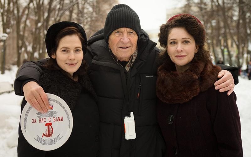 С Юлией Снигирь и Ксенией Раппопорт на съёмках фильма «За нас с вами»