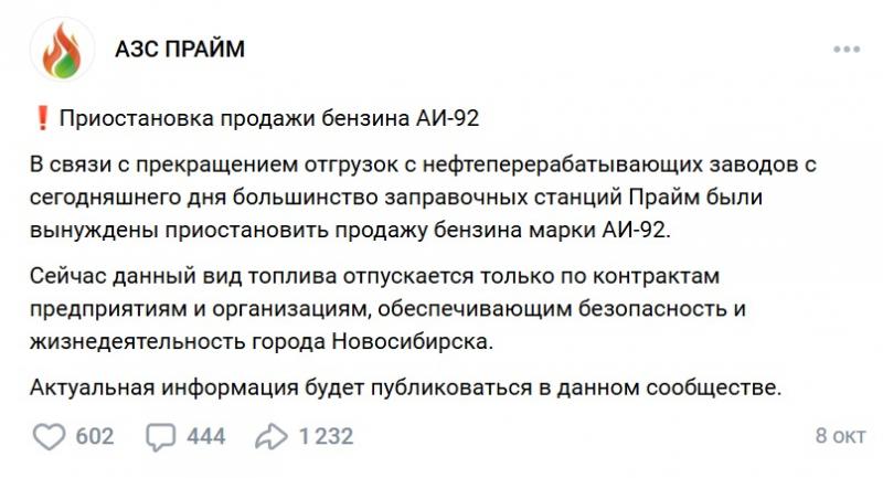 Слово «серьёзнее» оказалось пророческим. Следом за «Праймом» бензин начал пропадать на заправках «Опти», которые, на минуточку, работают как официальные партнёры «Газпром нефти». Затем тревожные сигналы посыпались с АЗС «Топаз» и «Горизонт». К 14 октября ситуация стала критической. Глава ассоциации независимых нефтетрейдеров «Сибирь-ГСМ» Сергей Лацких открыто заявил: почти все частные АЗС в регионе прекратили продавать АИ-92 и АИ-95.