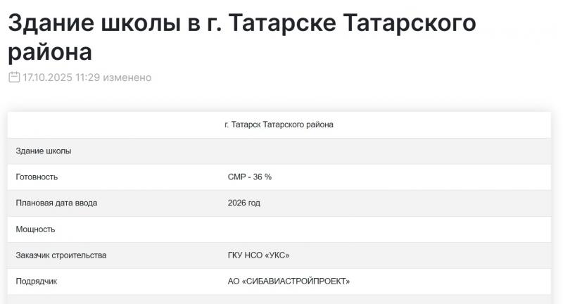 По данным регионального Минобра на октябрь 2025 года, на объекте всё ещё возводится каркас здания, а готовность школы составляет всего 36 %. При таком темпе очевидно, что и к первому сентября 2026 года школу не сдадут.