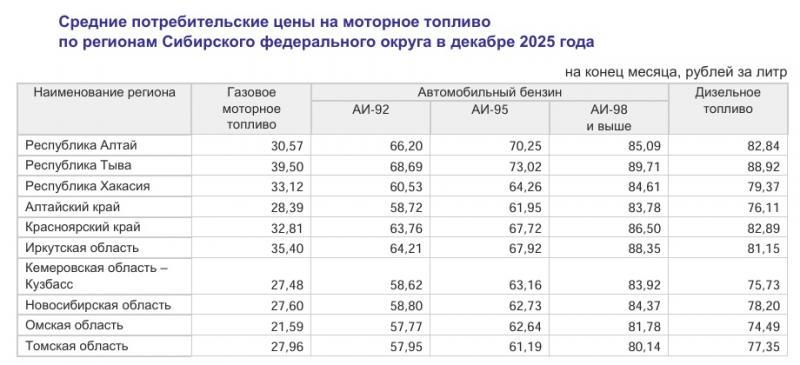 На фоне других регионов Сибирского федерального округа Новосибирская область выглядит далеко не самым выгодным местом для заправки. Самый дешёвый бензин марки АИ-92, а также дизель и газ сейчас можно найти в Омской области. Если же владельцу иномарки требуется качественный АИ-95 или АИ-98, то за ними выгоднее ехать в Томскую область. Пока новосибирские заправщики оправдывают ценники сложной логистикой и налогами, соседи умудряются удерживать стоимость на более приемлемом уровне для населения.