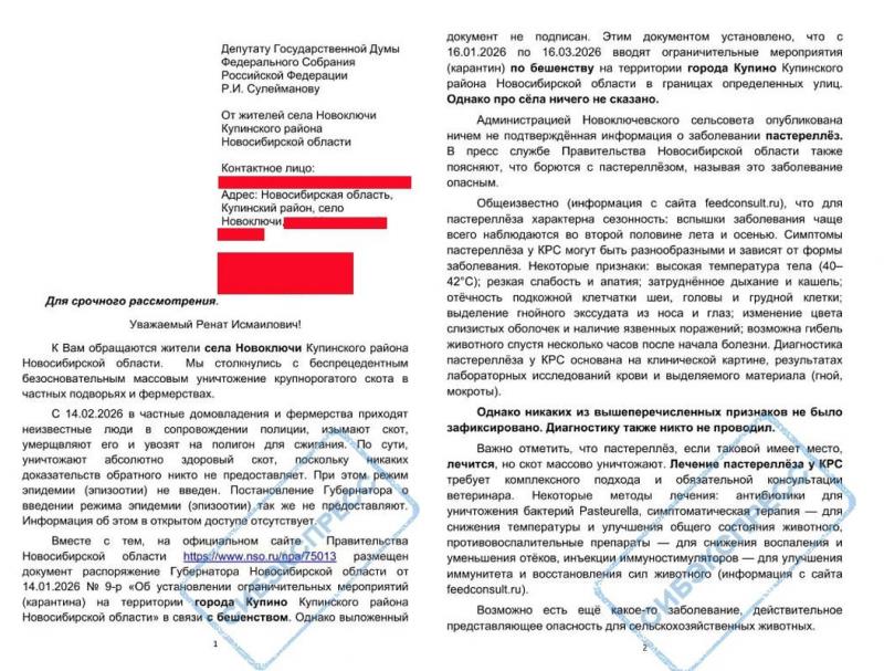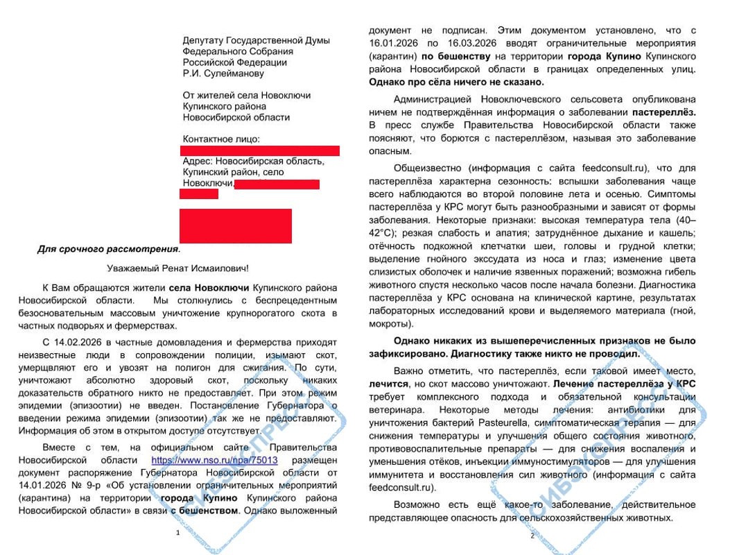 Жители сёл Новоключи и Козиха рассказывают идентичные истории: плановую вакцинацию, например, от ящура, им проводили в ноябре 2025 года. Но уже в феврале 2026-го ветеринары экстренно приехали с «ревакцинацией», когда эпидемия была в самом разгаре. Если первая вакцина была качественной и введена вовремя, то зачем потребовались экстренные меры через три месяца? Этот факт наводит на мысли либо о фиктивных записях в системе «ВетИС», либо об использовании просроченных или неэффективных препаратов. Чиновники же предпочли спрятаться за формулировкой о «неопределённом статусе региона», фактически признав, что контроль над эпизоотической ситуацией полностью утерян.