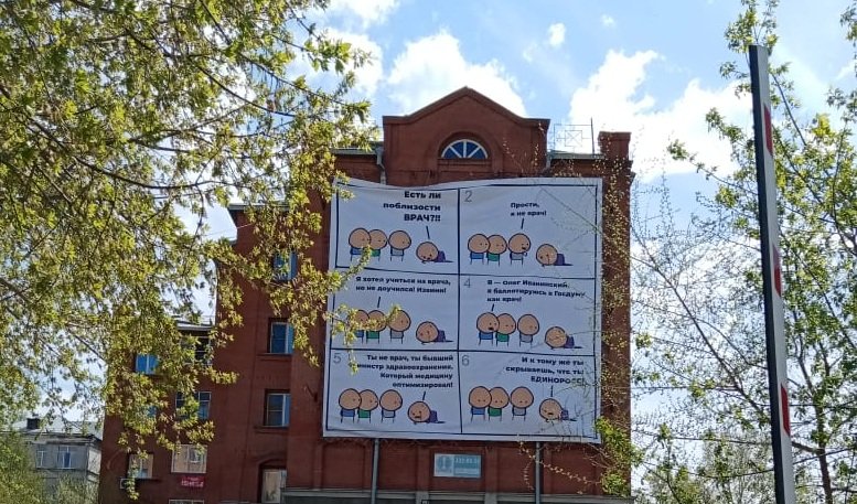 «Это не мой. Там есть вещи не очень корректные. Я врач, я заслуженный врач Российской Федерации. Я до 2001 года был действующим хирургом. Я сейчас написал заявление в МВД, чтобы разобраться, потому что все отказываются от этого плаката, говорят, что это не они. Мы подали заявление в МВД, а дальше будем думать, и решать, смотря кто заказчик».