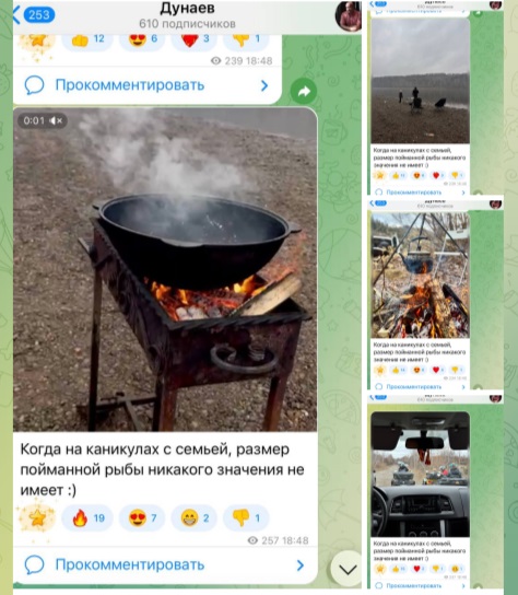 Он даже решил придать значимости своему отдыху с семьёй на рыбалке, опубликовав четыре одинаковых поста с разными фотографиями, но одной и той же подписью: «Когда на каникулах с семьёй, размер пойманной рыбы никакого значения не имеет».