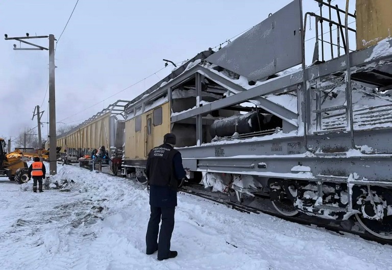 Следователи работают на месте схода снегоуборочной машины на станции Томск-2