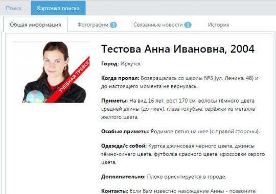 Веб-портал и мобильное приложение для поиска пропавших детей в Иркутской области разработал благотворительный фонд «Оберег». Приложение практически не имеет аналогов в России. Тестирование завершено, и теперь любой желающий может установить приложение на свой телефон и помочь найти пропавшего ребёнка.