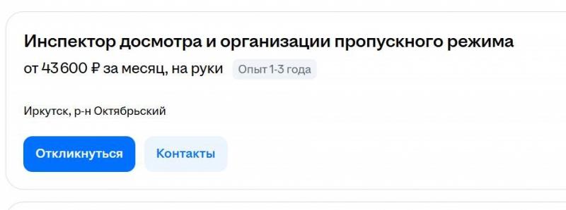 Или вот еще требуется инспектор досмотра и организации пропускного режима. Его зовут на такое вот жалование.