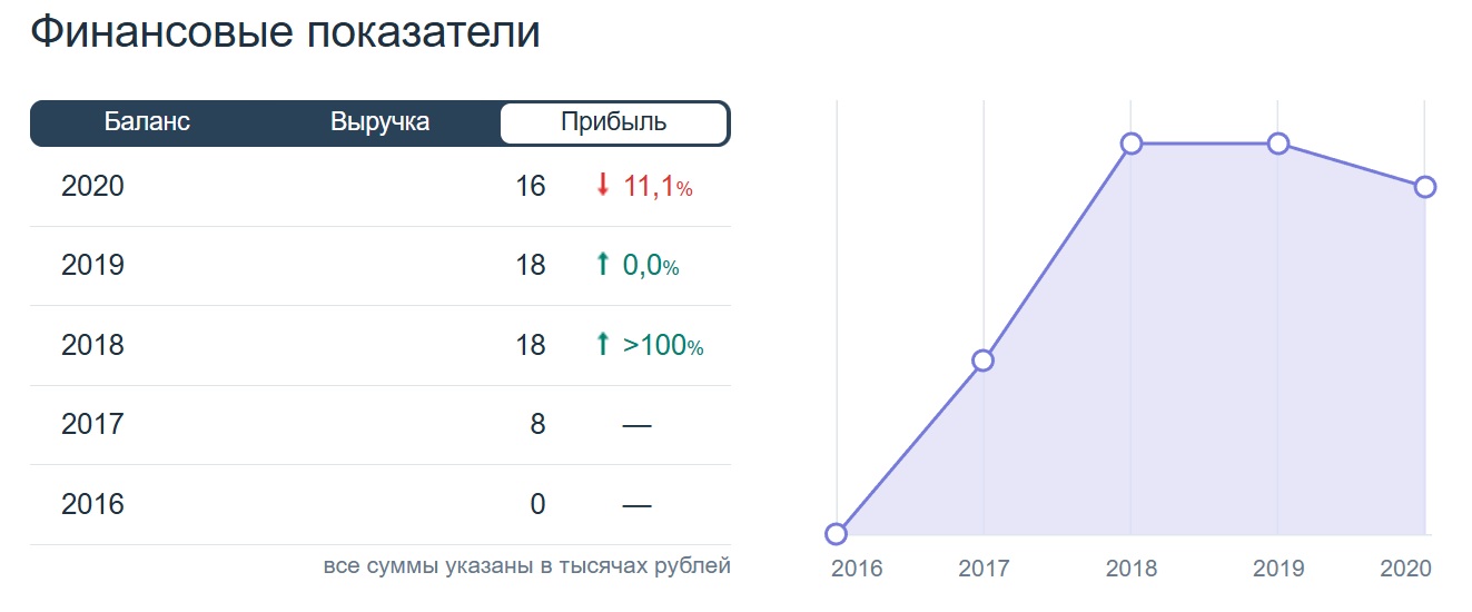Финансовые показатели этой фирмы выглядят как идеальный пример коррупционных схем. При выручке в 152,6 миллиона рублей в 2019 году прибыль составила всего 18 тысяч рублей. Рентабельность в 0,01 % — практически нулевой показатель. Такая аномально низкая прибыль при огромном обороте заставляет усомниться в том, что фирма вообще вела реальный строительный бизнес.