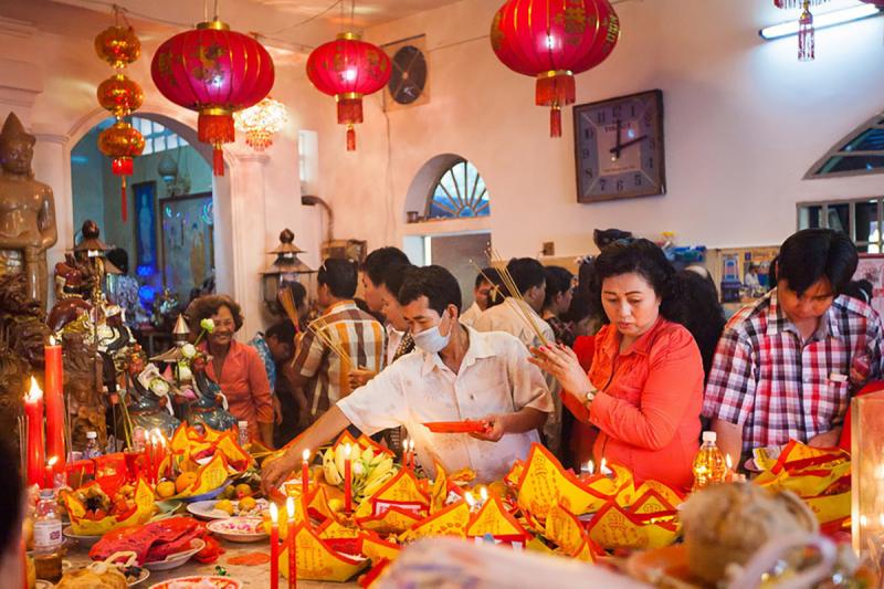 Ужин обычно проходит в шумном веселье: так привлекают в дом счастье и отпугивают злых духов. Спать после ужина не ложатся — «оберегают год». Очень многие выходят на улицу запускать фейерверки и взрывать петарды.