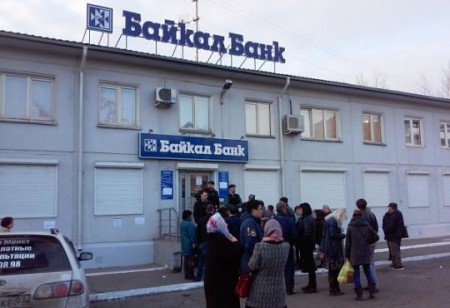 Возле двух работающих в ограниченном режиме офисах Байкалбанка собираются десятки людей. Настроение тревожное: до сих пор не все клиенты не могут получить деньги, ясности – заработает ли банк в прежнем режиме или прекратит свою работу – нет.