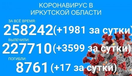 По данным оперштаба Иркутской области на 1 марта, в регионе зарегистрировано 247212 официально подтверждённых тестами ПЦР случаев заболевания коронавирусом. За последние сутки выявлено 2115 новых случаев.