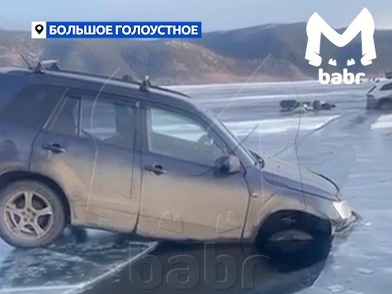 В районе села Большое Голоустное на Байкале провалились сразу две машины. Об этом сообщает телеграм-канал Babr Mash.
