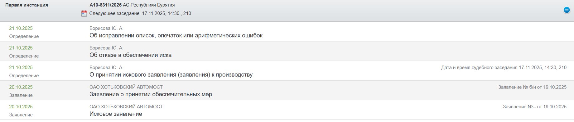 Финансовый коллапс генподрядчика не был секретом, Бабр писал о нём с конца 2024 года. По данным ФНС на 16 октября, отрицательное сальдо единого налогового счёта ОАО «Хотьковский автомост» превышало 657 миллионов рублей. Деньги от «Бурятрегионавтодора», очевидно, уходили на погашение долгов компании, а не на стройку.