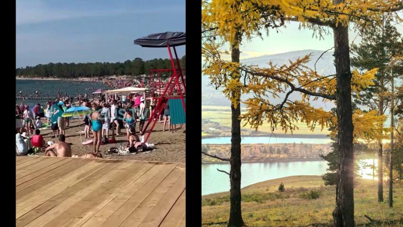 Переполненный пляж в Горячинске в июле и пустое, но живописное побережье одного из северных озёр Бурятии