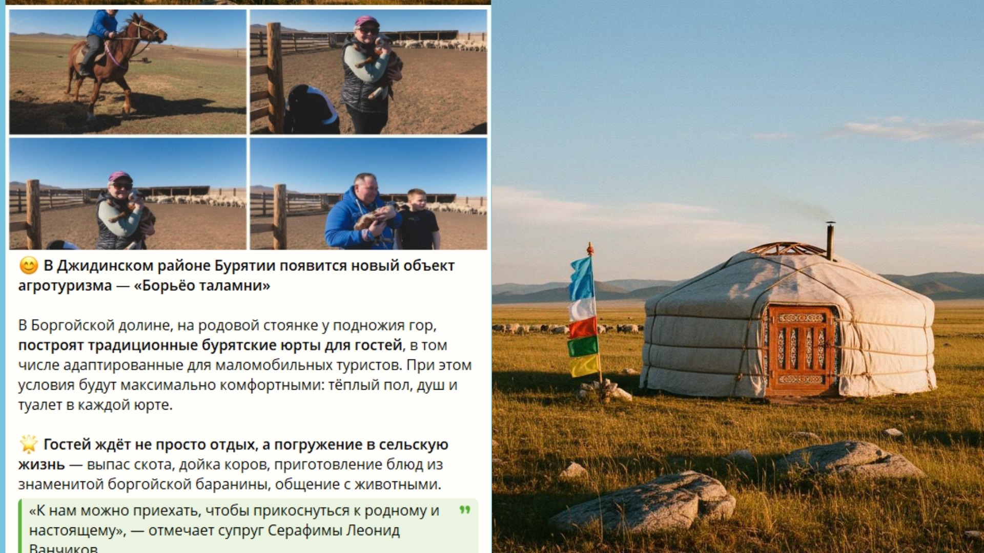 «В Боргойской долине, на родовой стоянке у подножия гор, построят традиционные бурятские юрты для гостей, в том числе адаптированные для маломобильных туристов. При этом условия будут максимально комфортными: тёплый пол, душ и туалет в каждой юрте», — сообщается в пресс-релизе правительства Бурятии.
