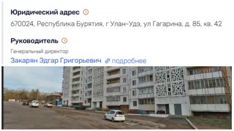 Налоговая инспекция зарегистрировала ООО «Доринвест» в обычной жилой квартире дома № 85 на улице Гагарина в Улан-Удэ. По официальным данным налоговой службы, в штате компании числятся всего 17 человек. Эдгар Закарян руководит фирмой с 2017 года и владеет ей единолично. Уставный капитал составляет 16 тысяч рублей. Фирма носит статус малого предприятия.